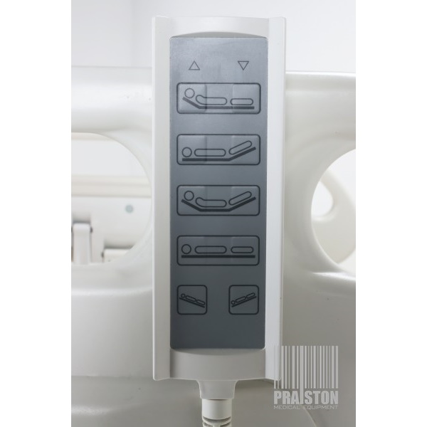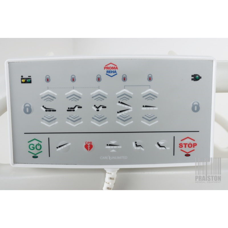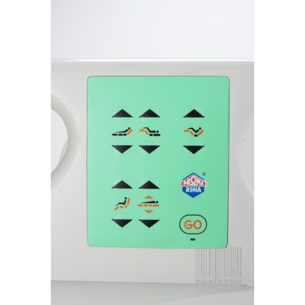 - Zintegrowane panele pacjenta z przyciskami obsługowymi po stronie wewnętrznej i zewnętrznej umożliwiają prostą, intuicyjną regulację leża,