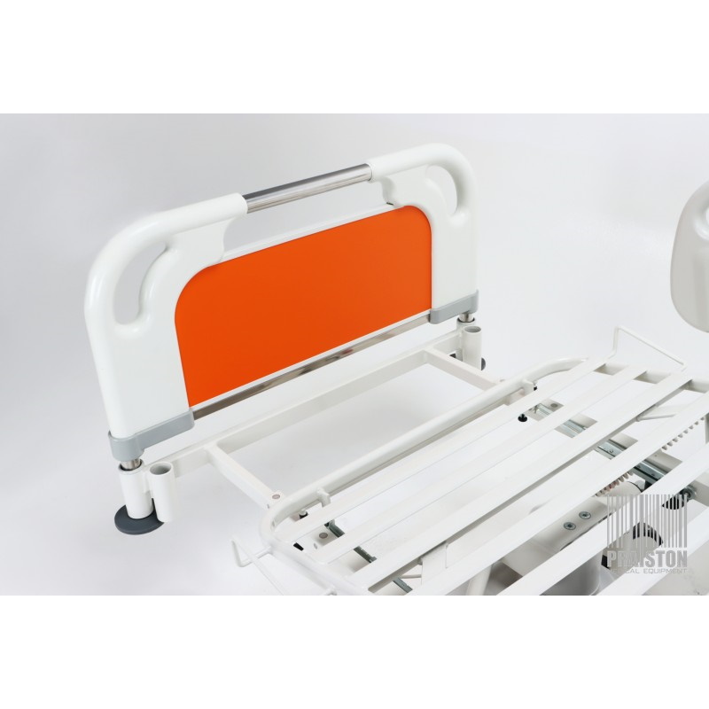- Dzielone, składane barierki boczne z tworzywa ABS, łatwo opuszczane i chowane pod leże z unikalnym systemem blokady,