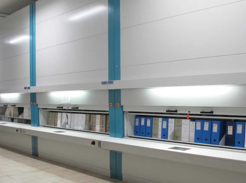 Urządzenia te wyposażone są w półki obracające się w pionie na żądanie użytkownika. Wybrana półka zatrzymuje się automatycznie przy blacie archiwum, skąd operator może pobrać wymagane dokumenty.