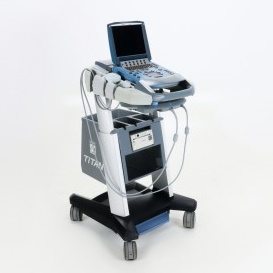 Aparat usg umieszczony ma mobilny wózku dokującym SONOSITE TITAN: