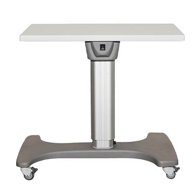 Stolik okulistyczny dla 1 lub 2 urządzeń okulistycznych, z symetrycznie umieszczoną kolumną, szeroka podstawa z 4 kółkami jezdnymi z hamulcem (STM-2K), pozwala na przeprowadzenie badania pacjenta na wózku inwalidzkim (STM-2KI).