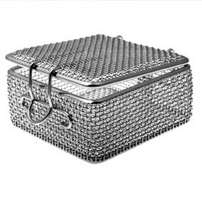 Małe kosze sterylizacyjne z siatki o drobnych oczkach z pokrywką, rozmair oczka 2mm x 2mm.