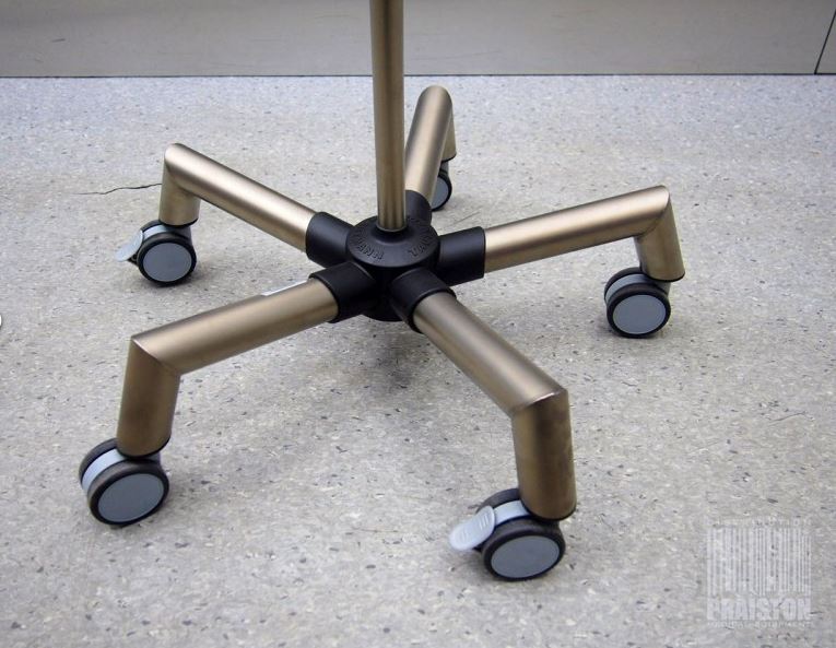- Pięcioramienna podstawa na podwójnych kółkach, w tym dwa z hamulcami,