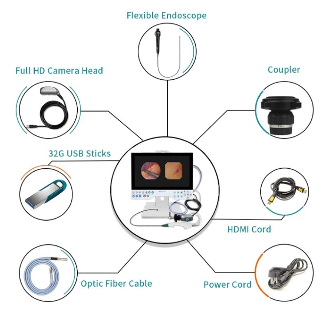 Zintegrowany system kamer HD do endoskopii typu „wszystko w jednym”. Przenośna kamera endoskopowa może być szeroko stosowana we wszystkich oddziałach klinik i szpitali: laryngologii, ortopedii, urologii, ginekologii, neurochirurgii, chirurgii plastycznej i tak dalej. Jest kompatybilny ze wszystkimi typami endoskopów sztywnych i elastycznych, takich jak sinuskop, otoskop, laryngoskop, artroskop, endoskop kręgosłupa, cystoskop, ureteroskop, restoskop, histeroskop, laparoskop itp. jak i endoskopów giętkich wielokrotnego użytku ( jednorazowe również) takich jak: rhinolaryngoskopów , video-bronchoskopów, video-cystoskopów, video-cysto-nephroskopów i to wszystko do jednego urządzenia.