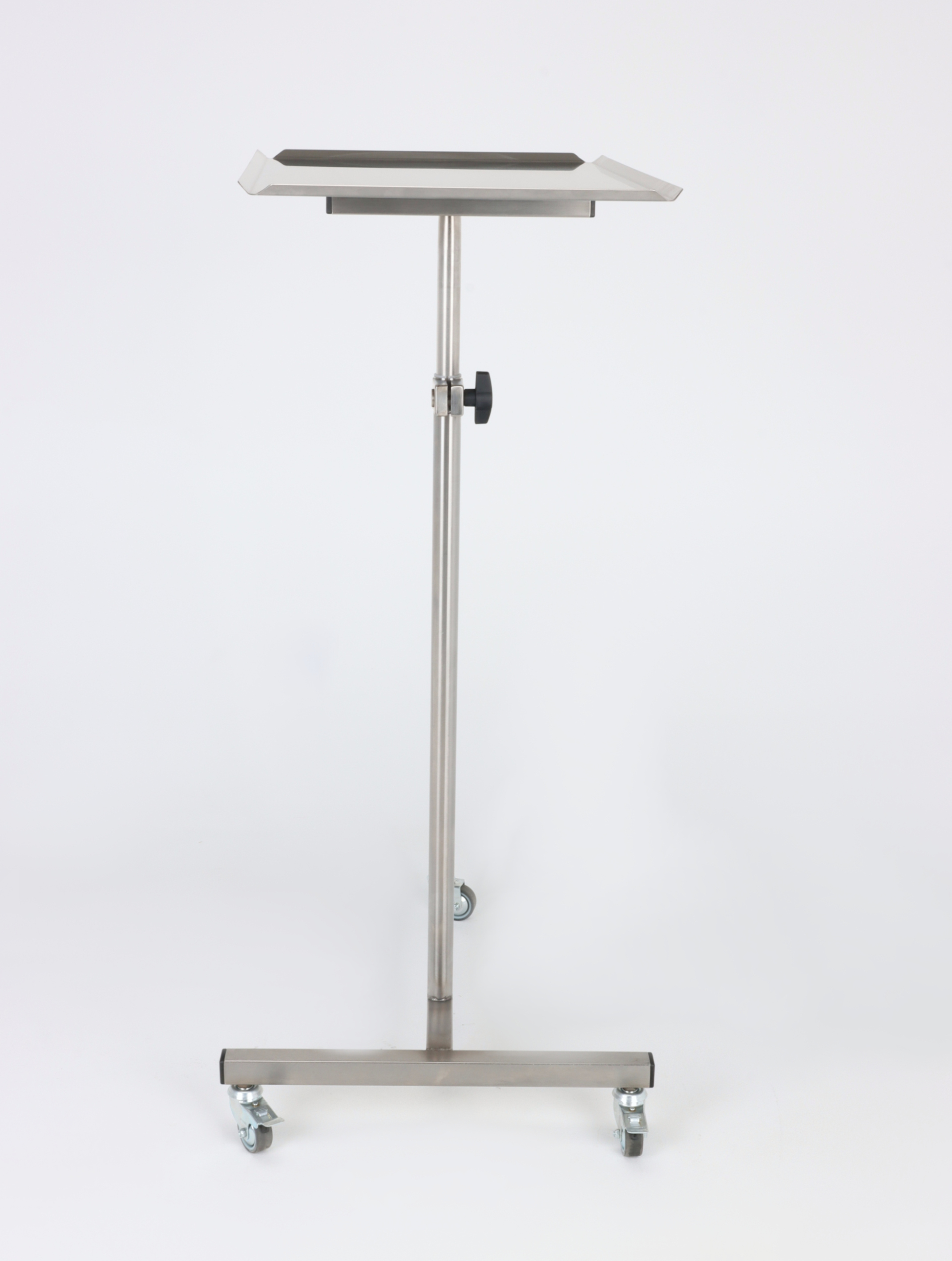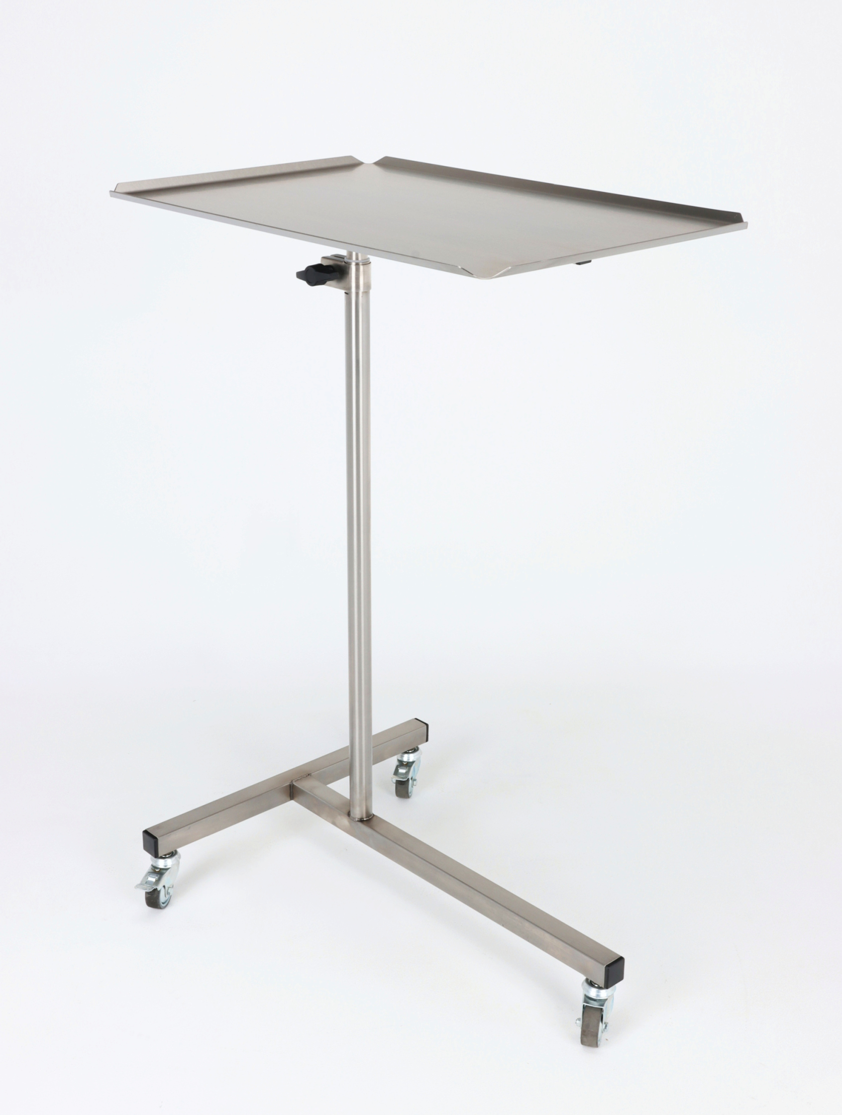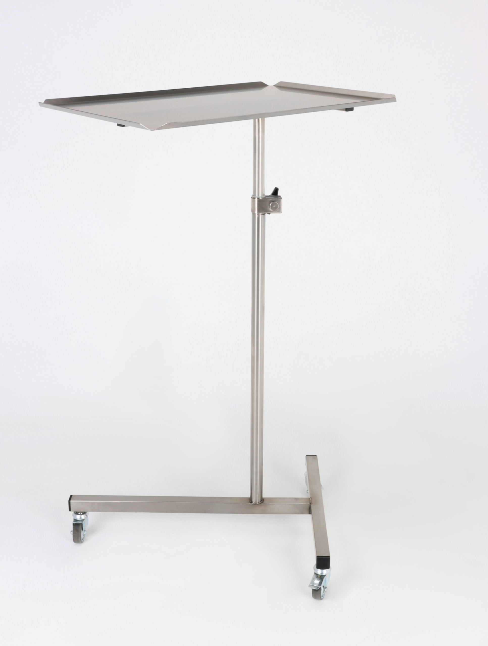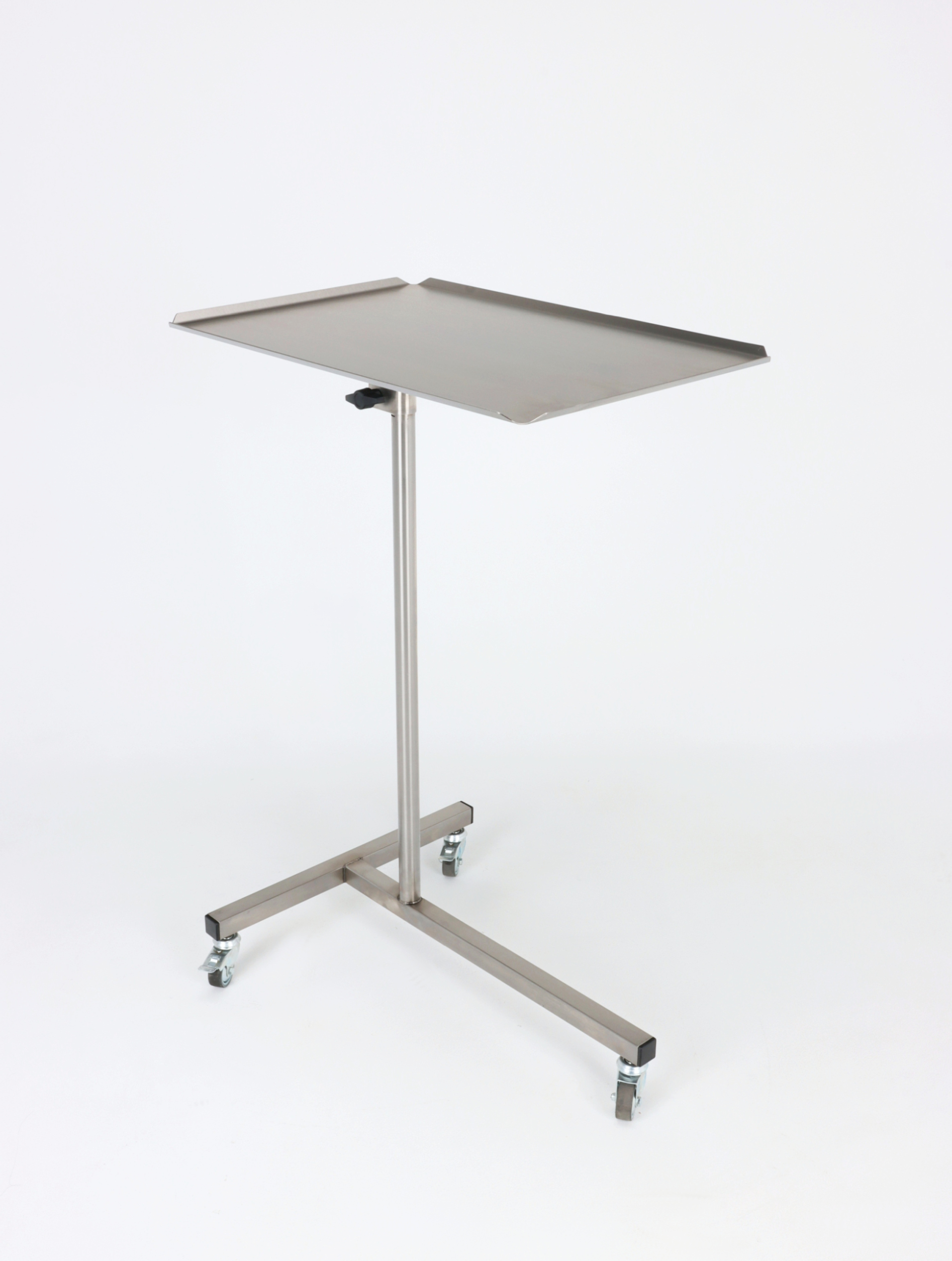 Blat z rantem, kolumna oraz podstawa stolika wykonana ze stali nierdzewnej,