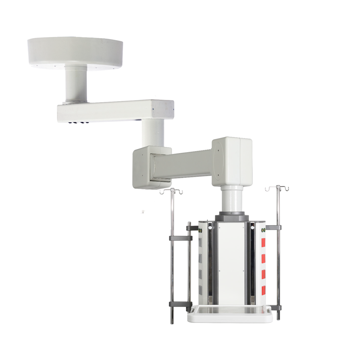 Kolumna UT 5070.81 to zaawansowane urządzenie medyczne wyposażone aż dwa ramiona, z elektromechaniczną regulacją wysokości konsoli, co zapewnia wygodę użytkowania i precyzję dostosowania do potrzeb personelu medycznego. Konstrukcja pozwala na obrót konsoli w zakresie 350 stopni, zapewniając łatwy dostęp do wyposażenia z każdej strony. Półki kolumny charakteryzują się wysoką wytrzymałością, z maksymalnym udźwigiem do 80 kg, co umożliwia stabilne umieszczenie różnorodnych urządzeń medycznych. Wszystkie komponenty, takie jak gniazda elektryczne, punkty poboru gazu i gniazda teleinformatyczne, mogą być dostosowane do indywidualnych wymagań użytkownika, co zwiększa funkcjonalność urządzenia. Kolumna została zaprojektowana z myślą o ergonomii, bezpieczeństwie i niezawodności w wymagającym środowisku bloku operacyjnego.