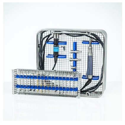- W zestawie: wiertarka z trzema osłonami wiertła, zestaw wierteł, kosz do sterylizacji i przechowywania.