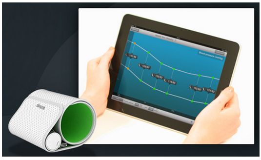 Monitor ciśnienia krwi jest zintegrowany z iPhonem, iPadem i iPodem Touch, by łatwo śledzić zmiany ciśnienia krwi w czasie.