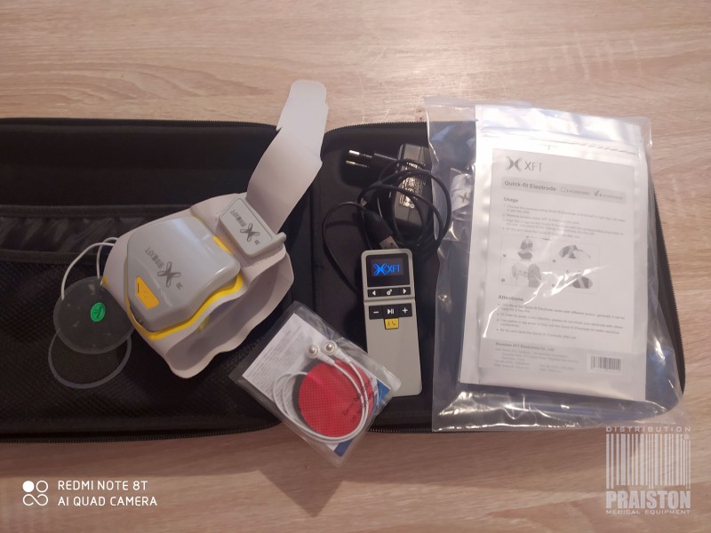 Nowy, powystawowy, Stan techniczny idealny, Produkcji P.R.C. Zasilanie: akumulator litowy wielokrotnego ładowania, Częstotliwość: 16,7 - 40 Hz, Szerokość impulsu: 100 - 300 mikrosekund, XFT - 2001 to najnowocześniejszy system do aktywnego chodu przeznaczony dla pacjentów, u których stwierdza się częściowy lub całkowity brak zgięcia grzbietowego stopy (stopa opadająca), Stymulacja odbywa się zgodnie z cyklem chodu pacjenta. W chwili zgięcia kolana urządzenie uruchamia stymulację mięśni odpowiedzialnych za zgięcie grzbietowe stopy. Wyprost kolana powoduje wyłączenie stymulacji, Dwa tryby pracy: Tryb treningowy: dla pacjenta, który nie jest w stanie wykonywać aktywnego treningu, przechodząc od treningu pasywnego do treningu chodzenia. Można wybrać ten tryb do treningu mięśni podczas siedzenia lub leżenia. Celem tego trybu jest przyspieszenie regeneracji mięśni, opóźnienie atrofii kontuzjowanej nogi, utrzymanie i poprawa zakresu ruchu kostki, a także poprawa miejscowego krążenia krwi. W trybie treningu działa cyklicznie zgodnie z ustawionym programem, Tryb chodu: stymuluje podczas chodzenia, przywraca neurologiczną funkcję motoryczną. Ten tryb pomaga chodzić normalnym chodem, gdy chcemy chodzić, stymulować podczas chodzenia, a powtarzany trening pozostawi ślady na korze mózgowej. Zasila centralny układ nerwowy, przywracając neurologiczną funkcję motoryczną mózgu, Wskazania: Udar mózgu, Niekompletne uszkodzenie rdzenia kręgowego, Urazowe uszkodzenie mózgu, Stwardnienie rozsiane, Porażenie mózgowe, Choroby górnego neuronu ruchowego, W zestawie: Stymulator z mankietem, Pilot zdalnego sterowania, Zasilacz 7 V, Smycz do pilota, Elektrody hydrożelowe, Ściereczki do czyszczenia, Pojemnik na wodę do czyszczenia, Instrukcja obsługi w języku polskim, Wymiary stymulatora: 75 x 70 x 10 mm, Waga stymulatora: 43 g, Posiada wystawiony aktualny Paszport Techniczny, Gwarancja: 6 miesięcy na rynek krajowy - Polska, 1 miesiąc na rynek międzynarodowy, Możliwość finansowania (tylko Polska): Raty, Leasing, Pożyczka,