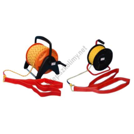 na końcu liny umieszczone zostały szelki do holowania tonącego. Produkt przydatny do podejmowania akcji ratunkowej na wodach otwartych.