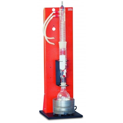 Kompletne systemy ze statywem, modułem grzejnym, mocowaniem, wężami i zestawem szkła (kolby okrągłodenne, ekstraktor, chłodnica Dimrotha).