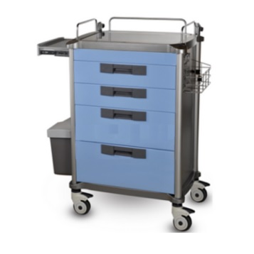 - Kompaktowy wózek zabiegowy JDEFY234 z czterema szufladami, centralnym zamkiem i blatem ze stali nierdzewnej.