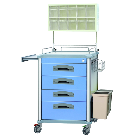 • Wózek wyposażony w cztery szuflady zamontowane na prowadnicach samodomykających i centralnym zamkiem.