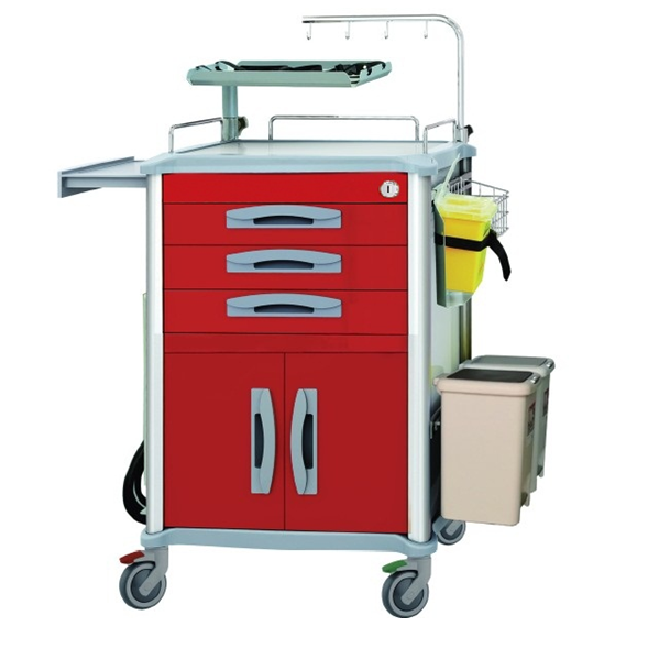 • Wózek wyposażony w trzy szuflady zamontowanych na prowadnicach samodomykających i centralnym zamkiem oraz szafkę dwudrzwiową