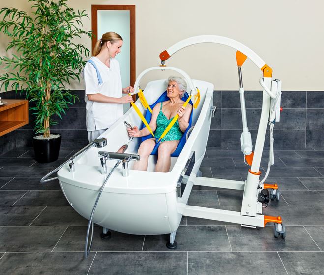Mobilny podnośnik elektryczny CARLO Classic stworzony został, aby poprawić wygodę pacjenta oraz komfort pracy personelu pielęgniarskiego. Stelaż wykonany jest z aluminium, co powoduje, że cała konstrukcja jest lekka, a zarazem bardzo stabilna. Do obsługi podnośnika wystarczy tylko jedna osoba, nawet w przypadku konieczności podniesienia pacjenta z podłogi. Przyczynia się do tego wysięgnik, który można opuścić aż do samej podłogi, a także proste w obsłudze czteropunktowe zaczepy szlufkowe, które dodatkowo minimalizują każdy ruch, dzięki czemu pacjent czuje się bezpiecznie i stabilnie. Podnośnik zapewnia każdorazowo ergonomiczną, bezpieczną oraz efektywną pracę, bez konieczności dodatkowego obciążenia aparatu ruchowego poprzez podnoszenie lub przenoszenie pacjenta siłą własnych mięśni.