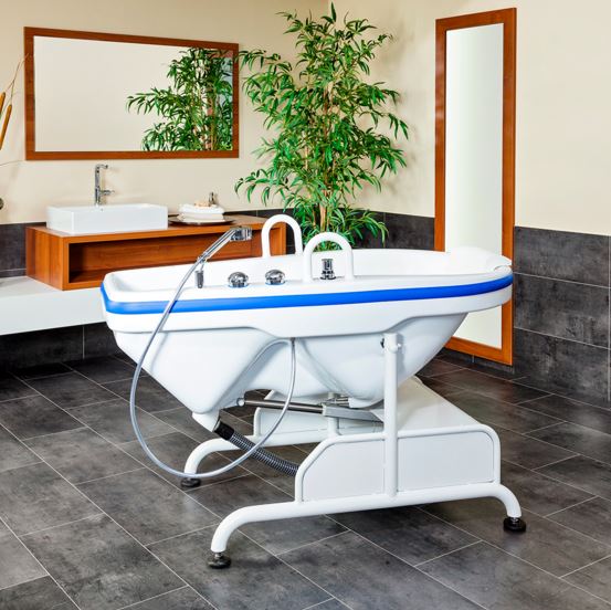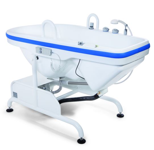 Pozycja wyjściowa wanny umożliwia osobom niepełnosprawnym - przy niewielkim udziale opiekuna - wejść do wanny. Ergonomiczna pozycja siedząca oraz materiał antypoślizgowy całkowicie chronią pacjenta przed poślizgiem w wannie. Obsługa pneumatycznym, bezpiecznym pilotem, daje możliwość swobodnego pozycjonowania wanny, aż do całkowitego poziomu. Dzięki tym zaletom zabiegi higieniczne dają poczucie samodzielności osobom wymagającym opieki, pozwalają na zachowanie godności oraz stwarzają okazję do zachowania intymności.