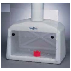 - Przezroczyste akrylowe skrzydło przesuwające się po torze z kółkami blokującymi w pozycji otwartej, zamkniętej lub pośredniej; dolna szczelina umożliwia ciągły przepływ powietrza