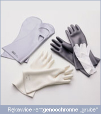 Wykonane z winylo-ołowiu, bezszwowe, nieklejone, rozmiar uniwersalny, kolor szary. Dla poprawy komfortu użytkowania dostarczane wraz wewnętrznymi rękawiczkami bawełnianymi. Dostępne w ekwiwalencie: 0,25 lub 0,5 mm Pb.