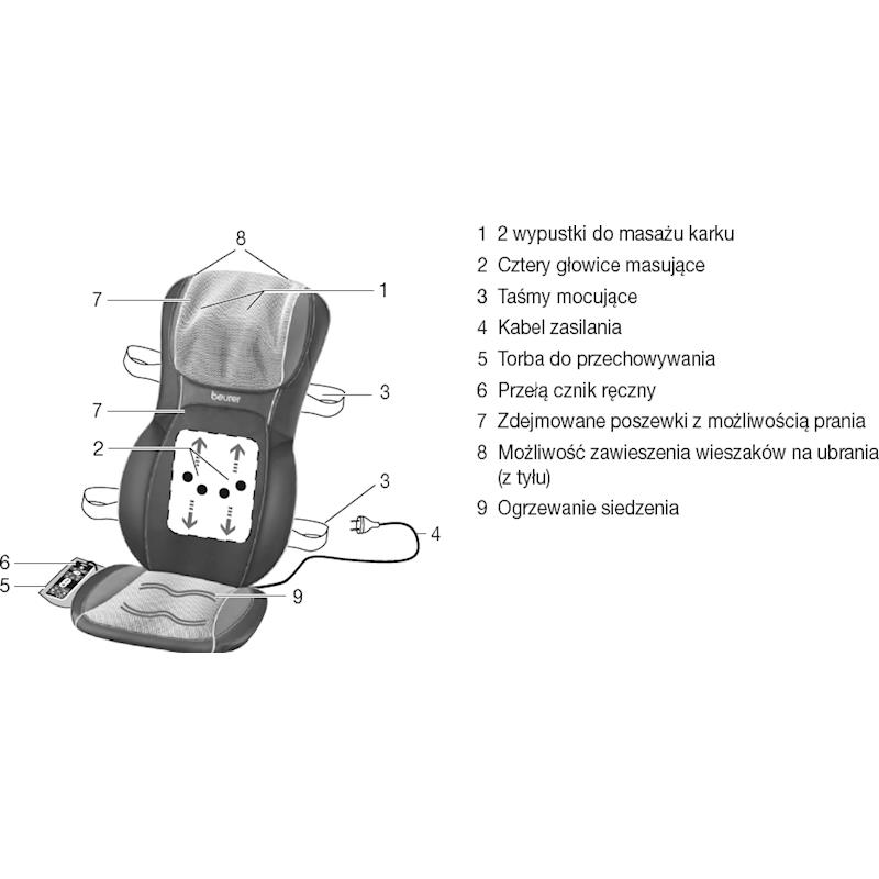 Mata do masażu shiatsu MG 295 - HD-3D to eleganckie urządzenie, które oprócz zalet jakie niesie w sferze zdrowotnej posiada również niezaprzeczalne walory estetyczne. Mata wyposażona jest w 2 głowice przeznaczone do masażu karku, oraz 4 głowice poruszające się wzdłuż kręgosłupa. Mata do masażu shiatsu MG 295 posiada dwie prędkości masażu oraz 3 strefy masażu. Wykonana została z wysokiej jakości materiałów, by zapewnić użytkownikowi najwyższy komfort. Pilot dołączony do maty umożliwia jej łatwą i intuicyjną obsługę. Matę można również z łatwością przechowywać w pozycji wiszącej np. w szafie, dzięki specjalnym zawieszkom. Dodatkowo można ją stabilnie i bezpiecznie umieścić na większości krzeseł i foteli z oparciem. Gwarancja producenta wynosi 36 miesięcy.