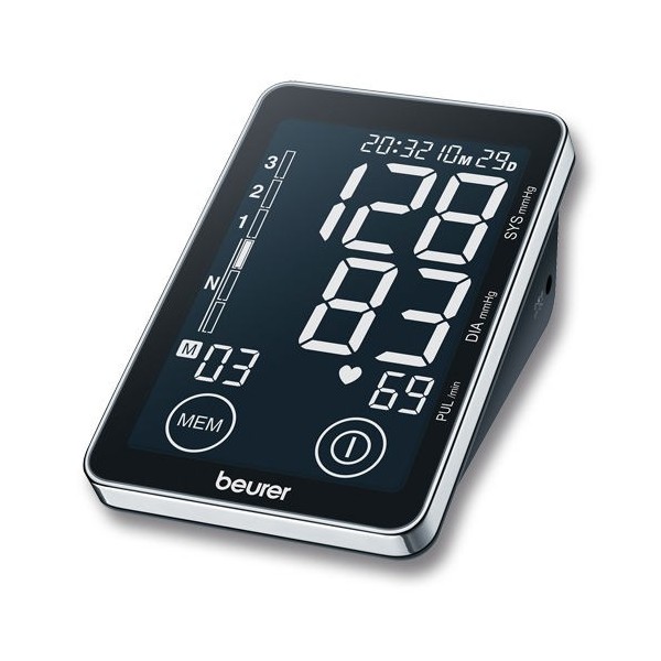 Ciśnieniomierz elektroniczny Beurer BM 58, zapewnia oscylometryczny pomiar ciśnienia krwi klasyfikowany zgodnie z zaleceniami WHO. Ponadto poza pomiarem ciśnienia i opcją wyliczenia średniej z wszystkich pomiarów bądź wieczornych/porannych pomiarów z 7 ostatnich dni, oferuje również pomiar pulsu. Możliwość zapamiętania po 60 pomiarów dla 2 osób. Dla ułatwienia użytkowania ciśnieniomierz ma takie funkcje jak automatyczne wyłączanie czy wskaźnik niskiego poziomu baterii. Dodatkowo zawiera opcję detekcji arytmii serca, a pomiary wyświetlane są na dużym, podświetlanym ekranie dotykowym, na którym również wyświetlana jest data i czas. Wyświetlane na ekranie cyfry są duże, a przycisk podświetlany po to, by ułatwić użytkowanie przede wszystkim osobom starszym. Dodatkowo model BM 58 oferuje bogatą możliwość połączeń mobilnych, kabel USB przez który można połączyć urządzenie z komputerem, oraz aplikacje HealthManager, w wersji dostępnej na systemy iOS i Android, pozwalającą na monitorowanie i zapisywanie wartości pomiarów.