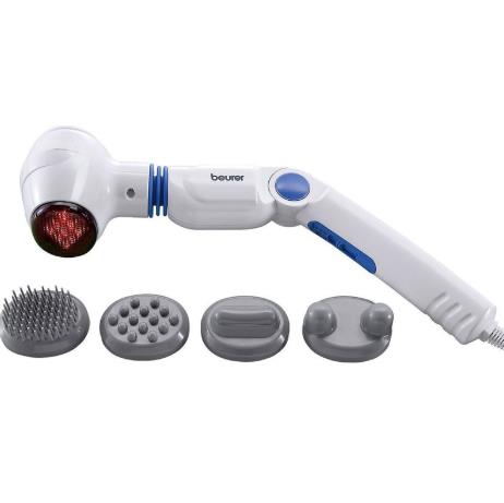 Masażer MG 40 to niezawodne urządzenie, które dzięki zastosowaniu praktycznego, ergonomicznego, zginanego uchwytu o trzech pozycjach regulacji pozwala na łatwe wykonanie masażu samodzielnie. Obracana o 180 stopni głowica urządzenia pozwala dosięgnąć trudno dostępne miejsca. Urządzenie posiada w zestawie cztery nasadki masujące o różnych kształtach wypustek. Dodatkową cechą masażera jest możliwość podgrzewania podczerwienią. Dzięki temu urządzenie posiada trzy tryby działania: masaż wibracyjny, podgrzewanie podczerwienią oraz tryb kombinowany oferujący masaż wibracyjny z jednoczesnym podgrzewaniem podczerwienią. Gwarancja producenta wynosi 36 miesięcy.