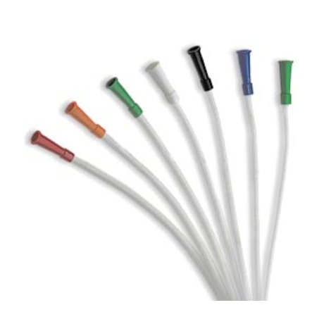 Atraumatyczna, lekko zaokrąglona specjalna otwarta końcówka Wyposażone w dwa boczne otwory końcowe naprzemianległe o łagodnie wyoblonych krawędziach Kolorystyczne oznaczenie rozmiaru na łączniku, numeryczne oznaczenie rozmiaru na opakowaniu Sterylne, sterylizowane tlenkiem etylenu