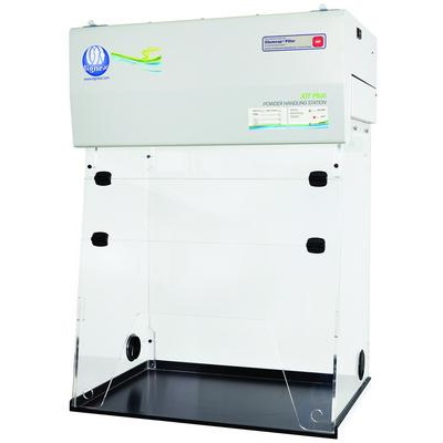 Do ochrony przed cząsteczkami podczas ważenia i przenoszenia proszków. W tych systemach filtracji cząstek stałych stosuje się dwustopniową filtrację. Po pierwsze, filtr wstępny usuwa cząsteczki> 5 mikronów, a następnie filtr HEPA o wysokiej wydajności, certyfikowany zgodnie z normą BS EN1822, usuwa cząstki stałe> 0,3 mikrona do filtracji absolutnej wynoszącej 99,997%.