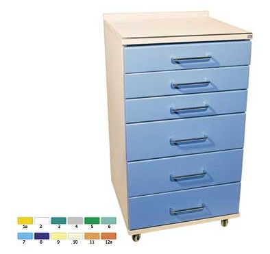 Wykończenie obrzeży specjalnym tworzywem zapewniającym dużą trwałość oraz solidność. Szuflady asystora są puste, w kolorze białym. Istnieje jednak możliwość dokupienia wkładek plastikowych, oraz górnej tacy metalowej.