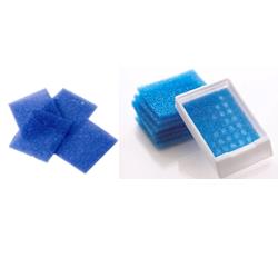Wkładki do kasetek (gąbki) umożliwiają przeprowadzenie bardzo drobnego materiału przy wykorzystaniu standardowych kasetek histopatologicznych. Zabezpieczają materiał przed wypłukaniem w trakcie przeprowadzania. Niebieski kolor gąbek umożliwia łatwe zlokalizowanie drobnego materiału.