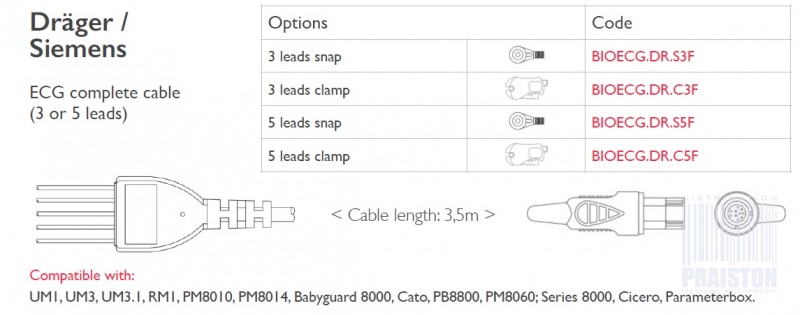 Dostępne wersje kabla EKG: