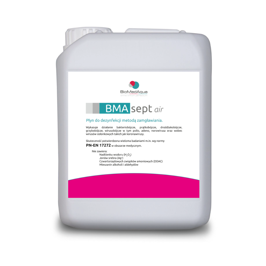 Produkty BMAsept przeznaczone są do dezynfekcji metodą zamgławiania przy użyciu wielu urządzeń: dyszowych, ultradźwiękowych oraz turbinowych (np. VirusJet) a ich skuteczność została potwierdzona testami dystrybucji wg normy PN-EN 17272:2020-10, które zostały wykonane w jedynym certyfikowanym przez PCA laboratorium w Polsce!