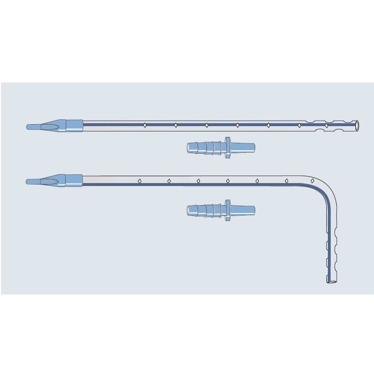 Cewniki radiocieniujące typu Thoracic wykonane z Silikonu lub PCV. Dostępne w kilku rozmiarach i długościach, wygięte lub proste. W zależności od rodzaju może mieć dołączony adatper lejkowaty lub stożkowy.