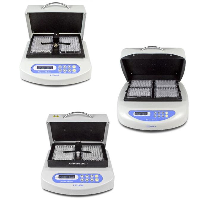 Wytrząsarki mikropłytek z inkubatorem serii PST zaprojektowane są do pracy ze standardowymi mikropłytkami 96-dołkowymi. Termo-wytrząsarki serii PST zostały zaprojektowane do stosowania jako 3 niezależne urządzenia: