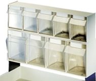 Nadstawki do wózków z pojemnikami akrylowymi na drobny sprzęt medyczny. Dostępne z nadstawkami 3-, 4-, 5- i 6- pojemnikowe w zestawach lub pojedynczo.