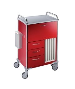 Wózek modułowy 1 ISO. Wyposażenie: szuflada na karty pacjentów 660x400x360 mm; 5 przegród na zdjęcia RTG 300x400x500 mm; 2 szuflady płytkie 360x400x150 mm; 1 szuflada głębsza 360x400x200 mm. Wymiary: 750x550x1085 mm.