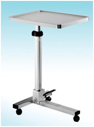 Stolik hydrauliczny na instrumenty na trójnogu wykonany ze stali kwasoodpornej. Regulacja wysokości w zakresie od 950 do 1350 mm realizowana za pomocą pedału nożnego. Maksymalna nośność: 30 kg.