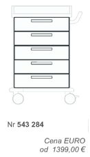 Wózek wykonany z dwuściennej stali lakierowanej proszkowo, blat z tworzywa ABS, system zatrzaskowy MEGAclick, liczba szuflad: 5