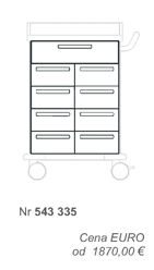 Wózek wykonany z dwuściennej stali lakierowanej proszkowo, blat z tworzywa ABS, system zatrzaskowy MEGAclick, liczba szuflad: 9