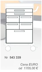 Wózek wykonany z dwuściennej stali lakierowanej proszkowo, blat z tworzywa ABS, system zatrzaskowy MEGAclick, liczba szuflad: 7