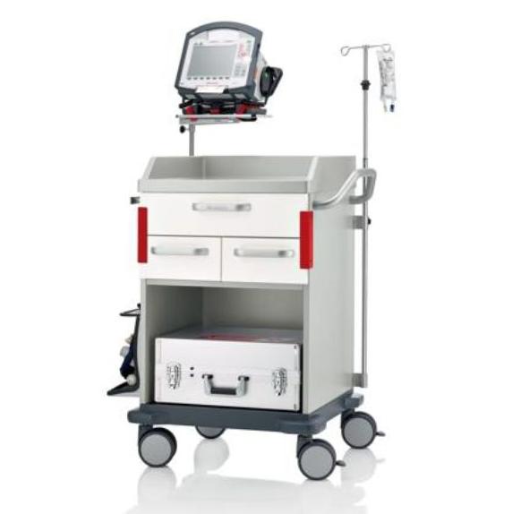 Wózek posiada mozliwość opcjonalnego wyposażenia w butlę z tlenem, zestaw do reanimacji pacjenta, listwę zasilającą, uchwyt płynów infuzyjnych oraz szuflady na ampułki, plomby do każdorazowego zabezpieczania leków, itp.