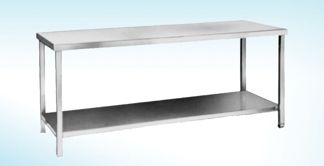 Stół ze stali kwasoodpornej. Wzmocniona podstawa z profili 40x40 mm. Blat pełny grubości 38 mm. Wysokość 890 mm, szerokość od 600 do 3000 mm, głebokość 600,700 lub 800 mm.Cena stołu zależy od jego gabarytów.