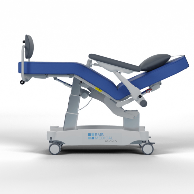 CLAVIA FCD to fotel do chemioterapii / dializy. Funkcje ruchu fotela są regulowane pilotem.