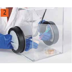 Łatwa praca z małymi ilościami próbek w zamkniętej przestrzeni roboczej. Łatwe w transporcie dzięki niewielkiej wadze. Panel i podstawa wykonane ze szkła akrylowego; porty rękawicowe, boczne porty irysowe (jeden po prawej stronie, jeden po lewej stronie). Dla zapewnienia szczelności porty irysowe mogą być łatwo wymieniane na zwykłe porty rękawicowe o średnicy 190 mm.