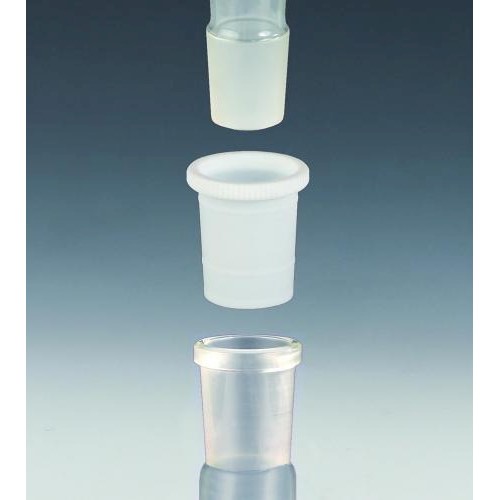 Wykonane z PTFE. Z pierścieniem zaciskowym w górnej części stożka, ułatwiającym wyjmowanie. Do uszczelniania szlifów o rozm. wg opisu, przy pracy z gazami, cieczami i pod próżnią. Wielokrotnego użytku. Ze wzmocnionym ożebrowaniem zewn., do uszczelniania wysokiej próżni (strata: < 1 x 10 4 mbar x L x s 1). Nie wymagają uszczelniaczy lub smarów.