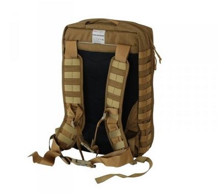 Możliwość przenoszenia w ręku oraz na plecach, za pomocą wygodnych, profilowanych szelek. Plecak jest wyposażony w system taśm w standardzie MOLLE 40/25 pozwalający na mocowanie dodatkowego oporządzenia. Dodatkowo opakowanie jest wyposażone w specjalną kieszeń na bukłak z wodą pitną, dostosowaną do wygodnego wyprowadzenia rurek i ich stabilnego zamocowania.