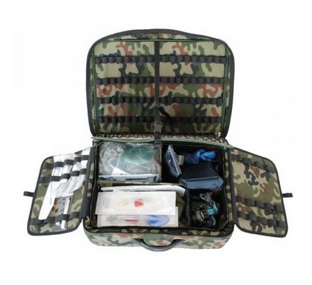 Wykonana z trwałego materiału. Konstrukcja aluminiowa, usztywniona płytami PCV. Wykończenie wodoodporne. Komora główna dzielona demontowalnymi przegrodami, umożliwiającymi dopasowanie przestrzeni walizki do gabarytów sprzętu. Demontowlana przegroda z kieszeniami siatkowymi oraz systemem gum mocujących. Niezależne ampularium oraz pojemnik na zestaw do intubacji. Możliwość przenoszenia w ręku. Niska waga.