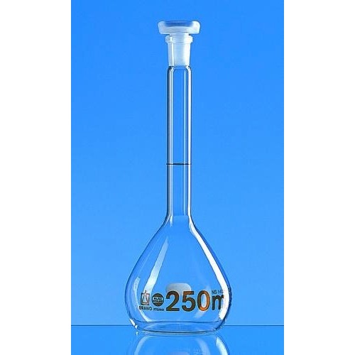 BLAUBRAND® ETERNA. Wzorcowane na wlew (TC, IN). Zgodne z normą DIN EN ISO 1042. Oznaczenia i opisy wykonane brązową farbą dyfuzyjną. Dostarczane z korkiem z PP. Oznaczenie DE-M. Wszystkie kolby pomiarowe BLAUBRAND® dostarczane są z numerem serii oraz certyfikatem serii dołączonym do opakowania zbiorczego producenta. Certyfikat dostępny także na stronie producenta. Na życzenie dostępne są także z certyfikatem indywidualnym lub certyfikatem kalibracji DAkkS. Kolby pomiarowe BLAUBRAND® (z wyjątkiem kolb z szeroką szyjką) dostępne są również z indywidualnym certyfikatem Farmakopei Amerykańskiej (USP).
