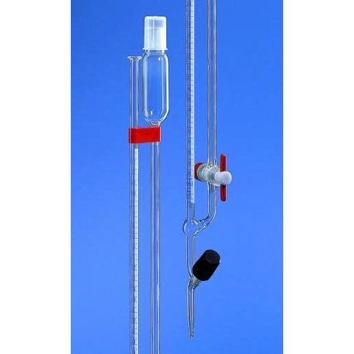 BLAUBRAND®, klasa AS. Znak DE-M. Szkło borokrzemianowe 3.3. Zgodne z normą DIN EN ISO 385. Wzorcowane na wylew (TD, Ex). Z paskiem Schellbacha. Z zaworem z wrzecionem wykonanym z PTFE (czop kurka w kranie pośrednim z PTFE). Wszystkie biurety BLAUBRAND® dostarczane są z numerem serii i jednym certyfikatem ( w oryginalnym opakowaniu zbiorczym). Na życzenie klienta dostarczane są także z indywidualnym certyfikatem kalibracji, USP lub DAkkS.