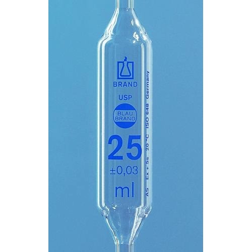 BLAUBRAND®. Zgodne z normą DIN EN ISO 648. Oznaczenie DE-M. Wzorcowane na wylew (TD, Ex). Podziałka i napisy wykonane trwałą, niebieską, wysoce kontrastową emalią.
