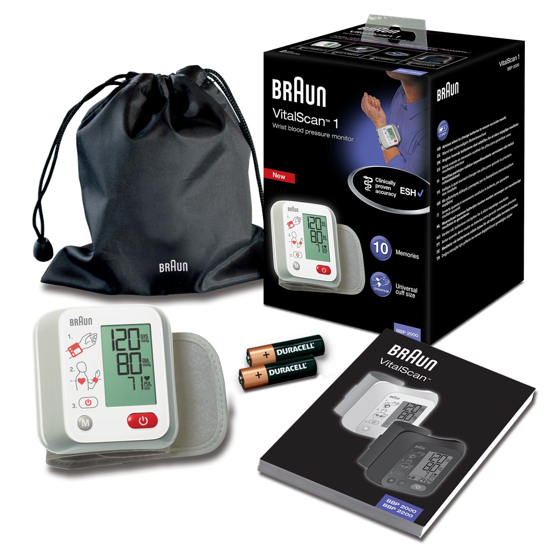 BRAUN VITALSCAN™ 1 BBP2000 Ciśnieniomierz nadgarstkowy - Kompaktowy i lekki, łatwy do przenoszenia. Przechowuje do 10 pomiarów. Krótki przewodnik po monitorze pomaga prawidłowo ustawić urządzenie i uzyskać najdokładniejsze wyniki.